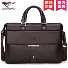 七匹狼正品 男士手提包横款真皮电脑包公文包商务 2017新款男包包