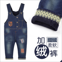 冬季童装男童背带裤女童儿童背带裤牛仔宝宝纯棉加绒裤可开裆1-4