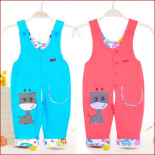 春秋童装纯棉婴儿童背带裤男童女童背带裤宝宝连身衣双层加里开裆