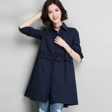 衬衫女长袖宽松A字韩版百搭中长款纯棉打底衬衣弹力寸衫春装上衣