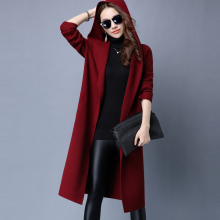 2017春装新款针织衫女开衫外套宽松韩版长款修身显瘦连帽风衣欧美