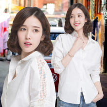 大码白衬衫女长袖职业装韩范翻领清新时尚百搭前短后长衬衣潮上衣