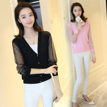 2017春装新款女开衫毛衣女外套短款薄款纯色韩版七分袖针织衫潮