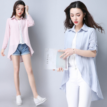 韩版夏天防紫外线雪纺防晒衣中长款翻领宽松纯色开衫小清新衬衫女