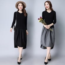 圆领针织连衣裙春秋款2017新款韩版宽松百搭喇叭袖中长款学生裙潮