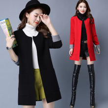 2017春秋季长袖针织衫女开衫中长款宽松显瘦韩版百搭薄款毛衣外套