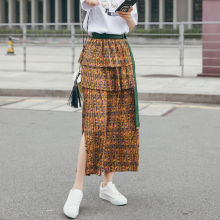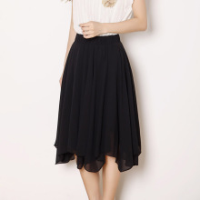 夏季新款雪纺半身裙优雅气质松紧腰裙子A字裙不规则大码中长裙女