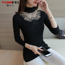 图米妃秋冬新品刺绣蕾丝针织衫亮钻套头长袖显瘦高领打底衫毛衣女