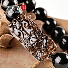 开光天然黑曜石龙牌吊坠男士项链霸气金曜石招财转运项坠护身饰品
