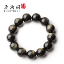 通幽阁天然双眼金曜石手链男士佛珠手串霸气黑曜石本命年招财转运