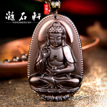 天然冰种黑曜石吊坠男士项链阿弥陀佛男女款属狗猪本命佛守护神