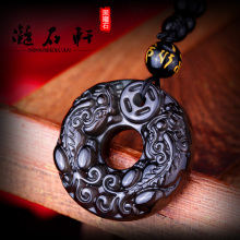冰种黑曜石貔貅吊坠男士 天然水晶项链平安扣项坠男款饰品女招财
