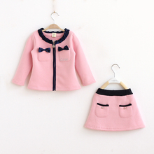 童装女童蝴蝶结拉绒长袖外套+短裙套装淑女纯棉拉绒两件套公主风