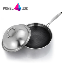 派能莲心悬浮304三层不锈钢耐刮钻技涂层多用途不粘煎锅炒锅