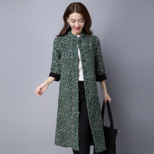 复古文艺民族风棉麻风衣外套女冬装新款大码碎花显瘦长款加厚棉衣