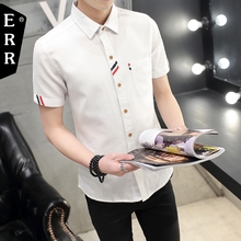 夏装韩版休闲大码短袖衬衫男纯色日系青少年学生潮流衬衣男装寸衫