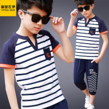 大童装男童夏装套装2017夏季 中大童儿童T恤套装夏天纯棉小孩条纹