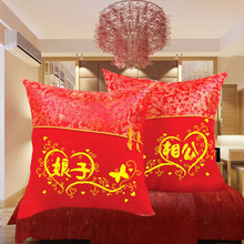 新款印花客厅婚庆情侣靠垫喜庆结婚款大红十字绣抱枕老公老婆一对