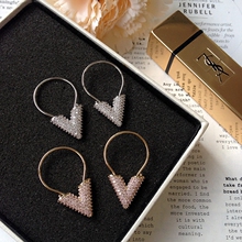 韩国直送 925银针防过敏 爱心 锆石微镶 性感可爱气质长款大耳环