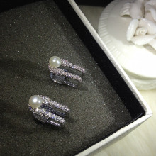高端定制 韩国设计师款 锆石微镶 天然珍珠 别针款 气质耳钉耳环