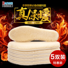 5双装仿羊毛保暖鞋垫加绒加厚吸汗防臭男女手工毛绒棉鞋垫软冬季