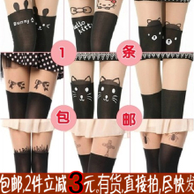 包邮日系拼接假高筒过膝卡通假纹身袜大腿连裤猫咪爱心春季款丝袜