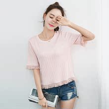 2017夏新款女装韩版纯棉拼接流苏短袖女T恤小衫宽松显瘦88886#