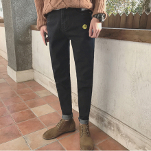 2017年四季新款笑脸刺绣贴标哈伦裤小脚牛仔裤潮