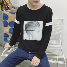 宾敦秋季新款韩版修身印花长袖学生青年男士套头卫衣T恤男打底衫