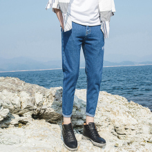 2017年春季新款青年男牛仔九分裤大码小脚裤刺绣牛仔裤男