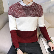宾敦秋冬潮流男装毛线衫青少年韩版拼色针织外套男套头圆领毛线衣
