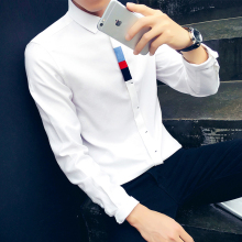夏秋季男装长袖衬衣潮流男士韩版修身长款衣服休闲青少年大码衣服
