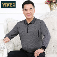 YiVE/易威中老年男装T恤爸爸装长袖体恤翻领条纹父亲老人春装8005