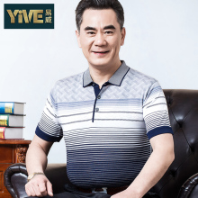 YiVE/易威父亲男士短袖t恤中老年爸爸装条纹体恤翻领老人夏新8091