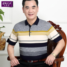 七喜鹿夏季新款翻领大码中年男士丝光棉短袖t恤爸爸装体恤父亲装