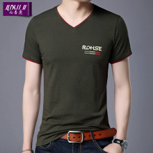 夏季丝光棉男士V领短袖t恤韩版修身半袖衫体恤衫青年商务休闲男装