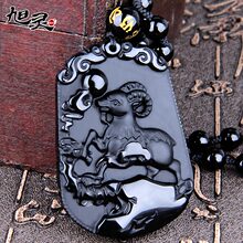 旭灵天然黑曜石吊坠男士项链十二生肖项坠男女款羊猴本命佛守护神