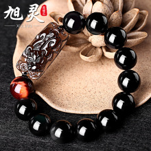 旭灵 黑曜石手链男士款彩虹眼水晶手串女天然女款佛珠本命年饰品