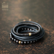 黑色日韩复古个性女男同款手工编织手绳原创设计多层饰品特色手链