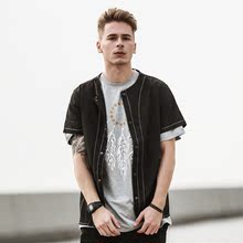 衬衫男短袖 宽松 学生 休闲 夏季 欧美街头棒球款衬衣 衬衫男潮牌