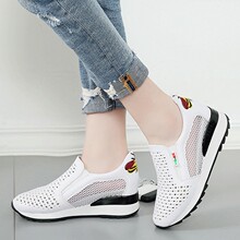 内增高女鞋春夏季镂空乐福鞋透气小白鞋休闲运动鞋厚底坡跟单鞋