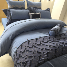 欧式美式全棉贡缎四件套纯棉贴布绣床单被套1.8m牛仔布床上用品男