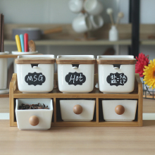 厨房储物陶瓷调味瓶罐套装 上下层抽屉式翻盖辣椒盐罐调料盒6件套