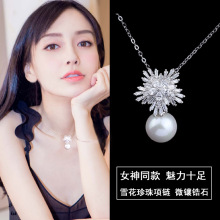 韩国锁骨链名媛气质雪花微镶嵌锆石挂饰项链 珍珠母贝吊坠链