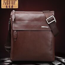 派保爵男士包包竖款商务男包真皮休闲头层牛皮单肩包男斜挎包正品