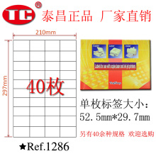 泰昌A4不干胶背胶亚光标签自粘贴纸40格电脑打印52.5*29.7No1286