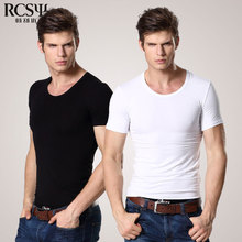 Rcsy/畅舒优男士夏季莫代尔紧身短袖半袖T恤 随心裁无痕V领打底衫