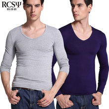 男士打底衫修身纯棉V领超薄莫代尔纯色秋衣单件百搭紧身长袖T恤