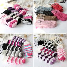 可爱拼色麻花球球连指手套包指双层加厚针织毛线手套女冬季包邮