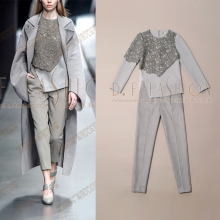 春装套装女装时尚气质2017新款潮欧美名媛上衣外套高腰裤子两件套